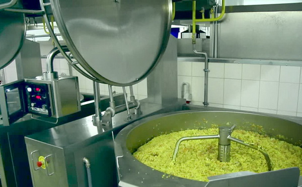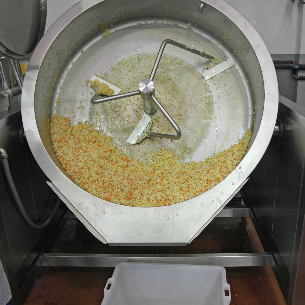 сковорода с автоматическим перемешиванием, с плоским дном Nilma Salsamat 500,    Опции: Тележка для выгрузки и соединение с дозатором жидких однородных блюд.